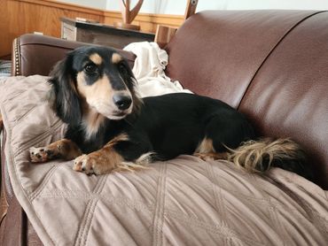 Piper is a Black and cream (Ee). She carries chocolate, piebald and dilute. She is 14 pounds.